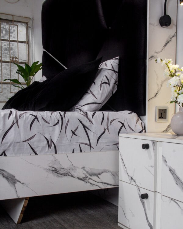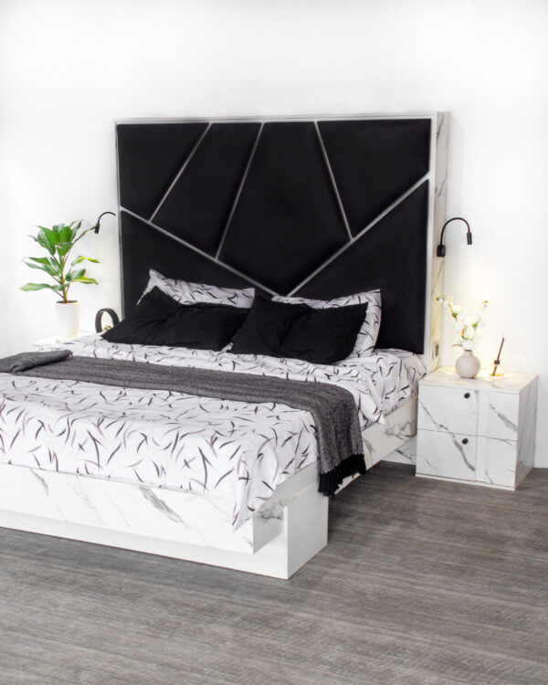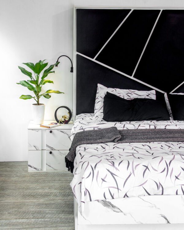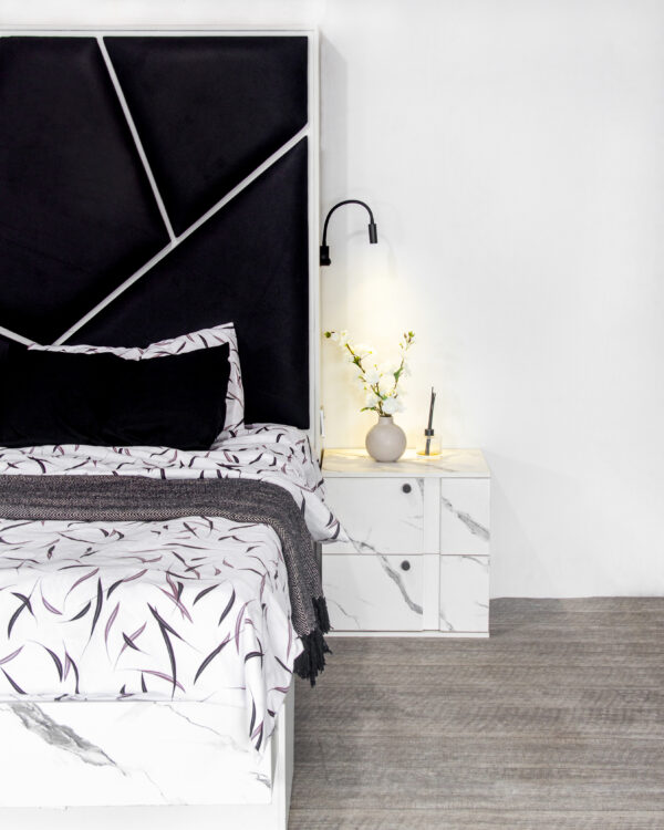 With our CUPIO collection we can truly get the sleep and rest needed for each day. Our CUPIO bed frame serves as the centerpiece of your bedroom, combining exquisite craftsmanship with exceptional comfort. Crafted from high-quality HDF wood, it boasts a sturdy construction that ensures durability and longevity. The elegant design features clean lines and a graceful headboard.