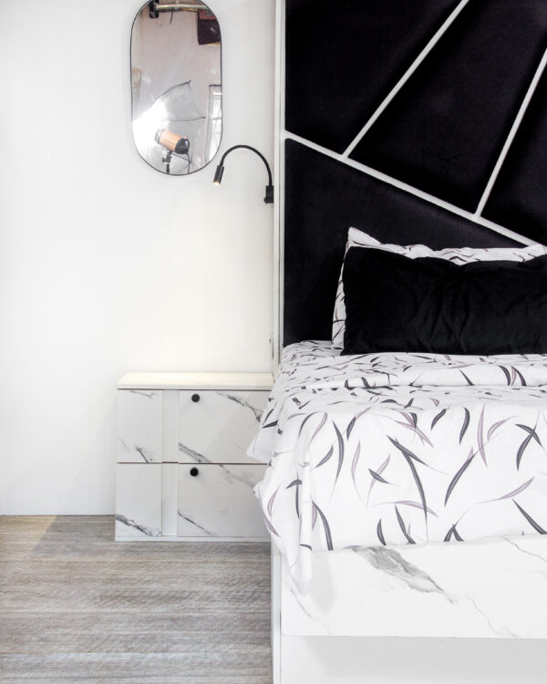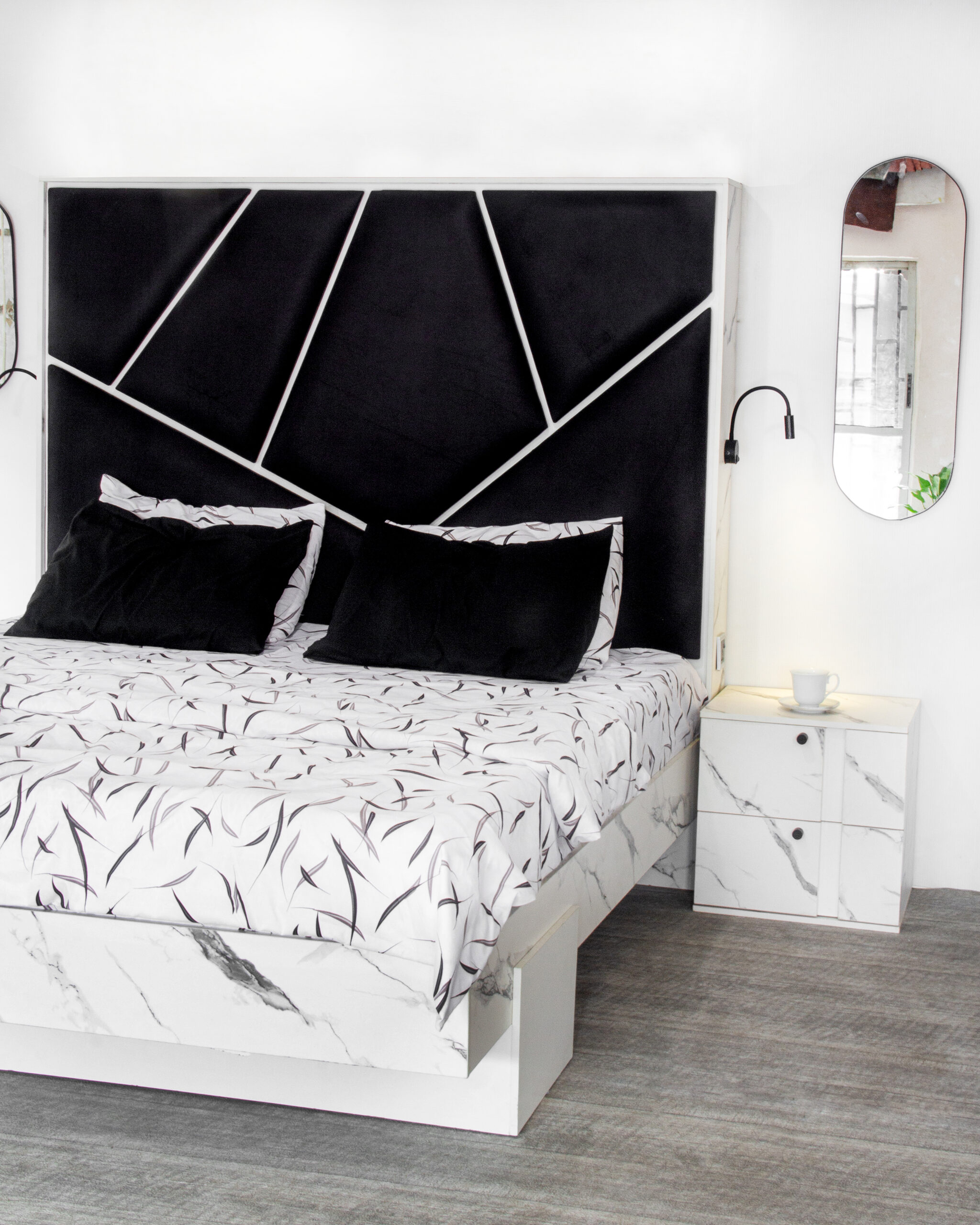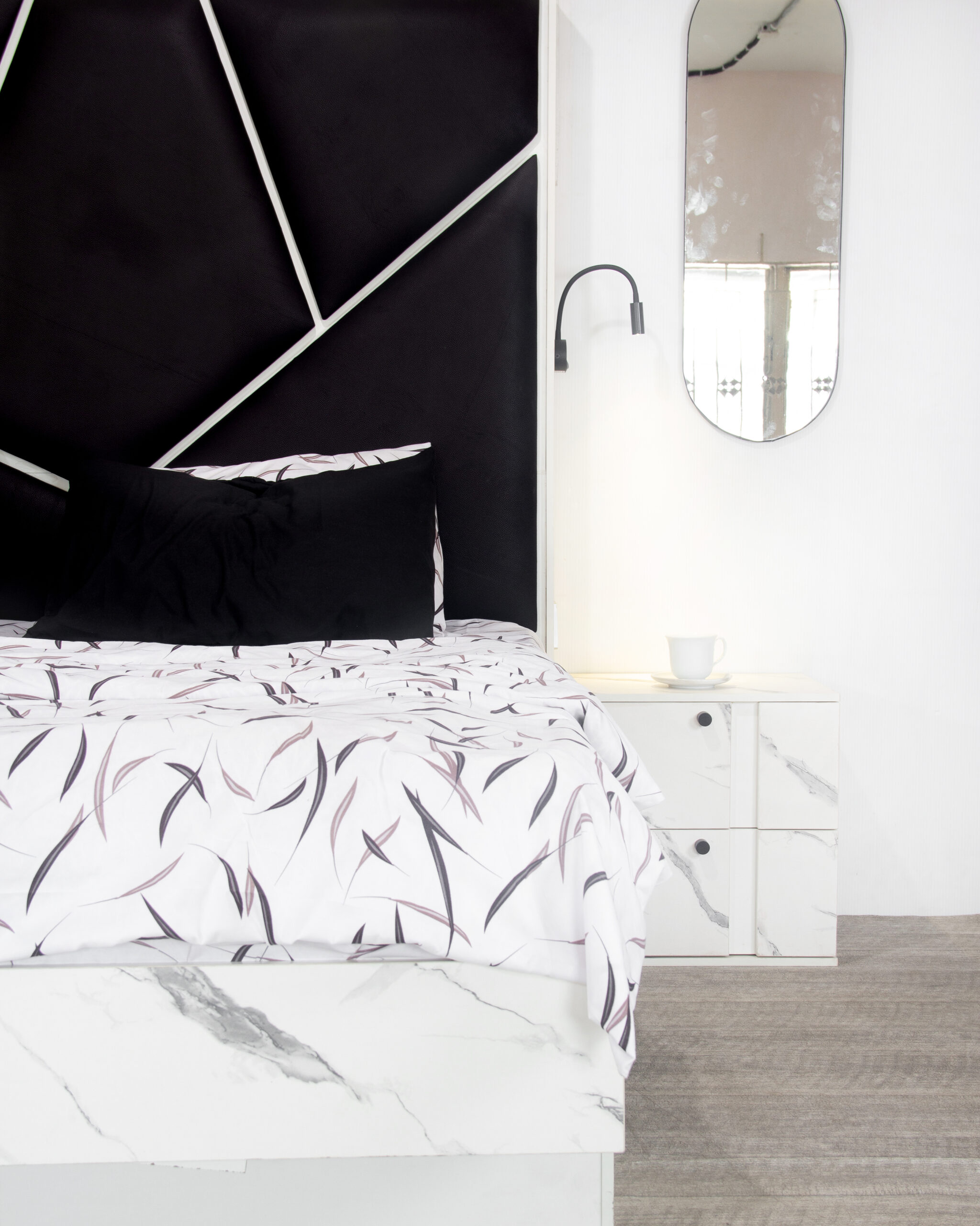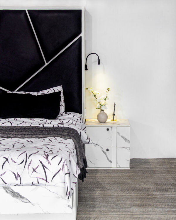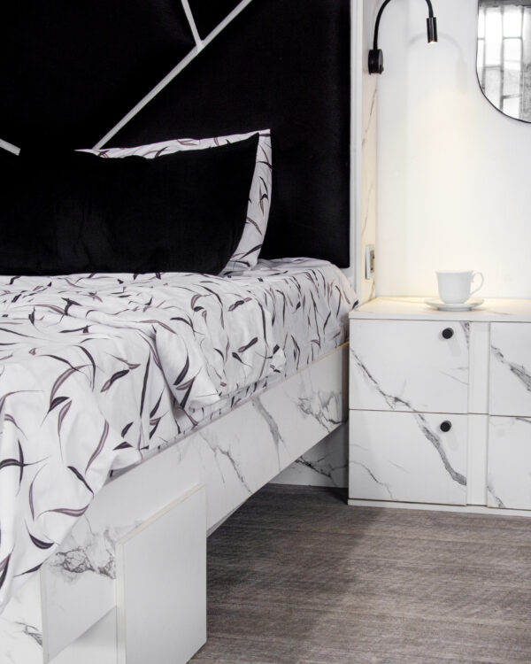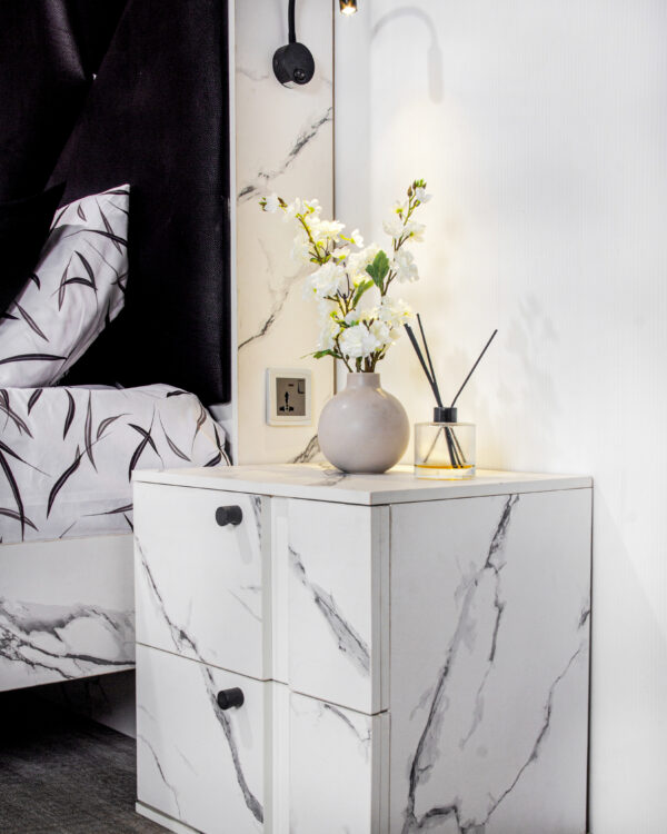 In our vibrant Offwhite & Light Marble, your bedside table becomes a warm, inviting piece that makes you more eager to be in this space.
