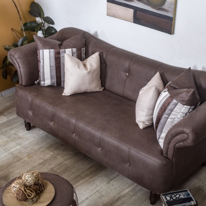 Large and deep seated, with foam cushioning upholstered in microfibre for comfort. The choice of fabric ensures elegance and comfort, adorned with buttons to give texture and shape.